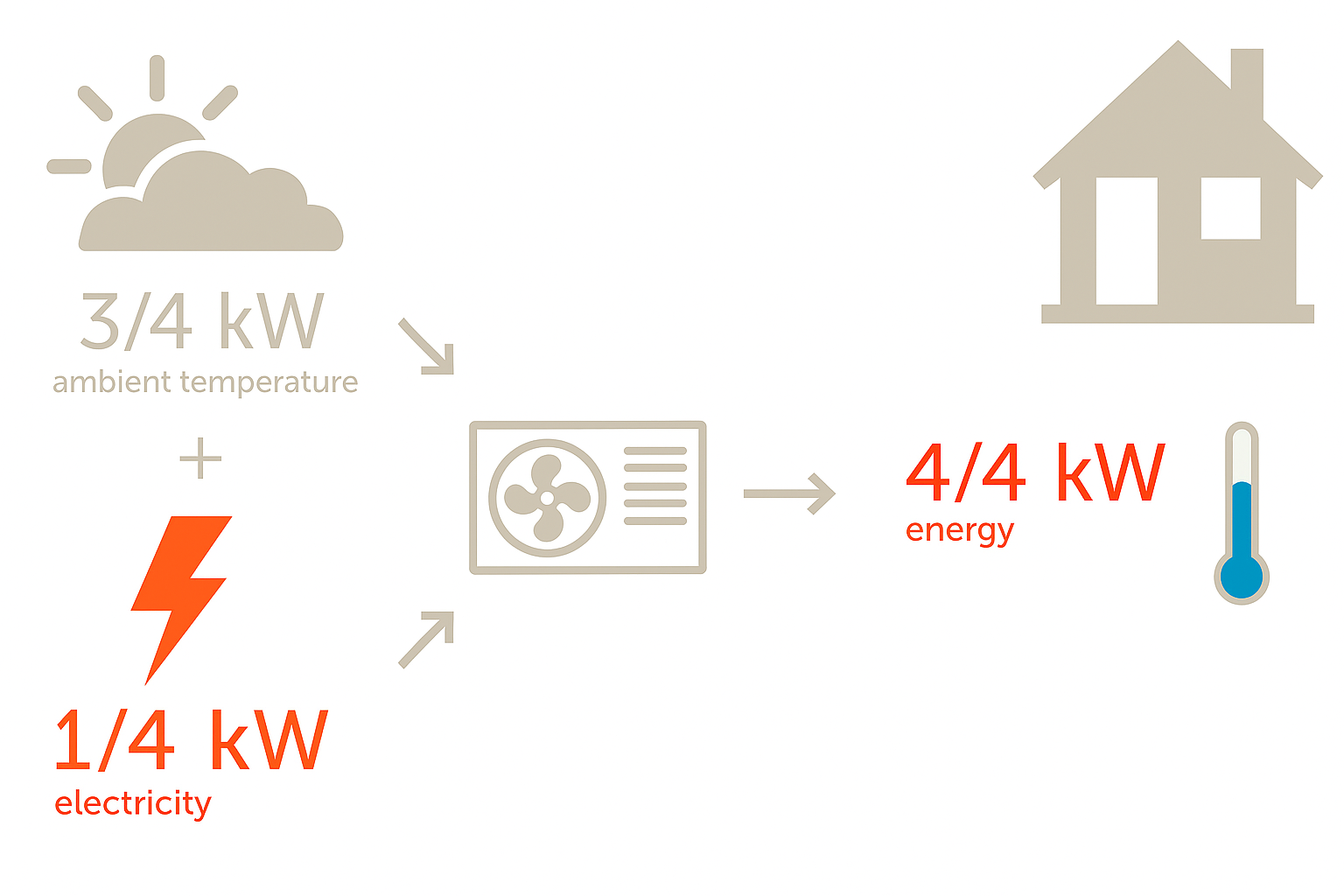 Een warmtepomp bestaat uit een warmtebron (zoals de buitenlucht), twee warmtewisselaars (één om warmte op te nemen en één om warmte af te geven) en een relatief kleine hoeveelheid elektrische energie. Deze is nodig om de warmtepomp aan te drijven. Een warmtepomp onttrekt thermische energie (warmte) uit de omgeving.